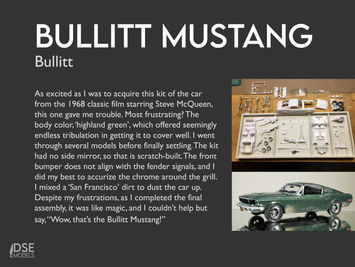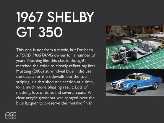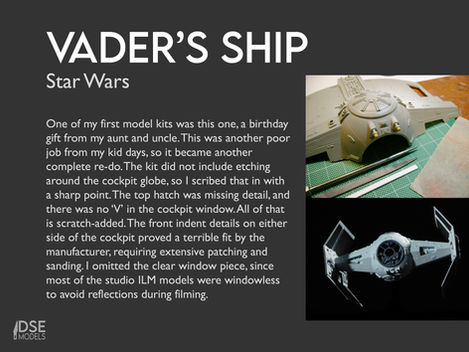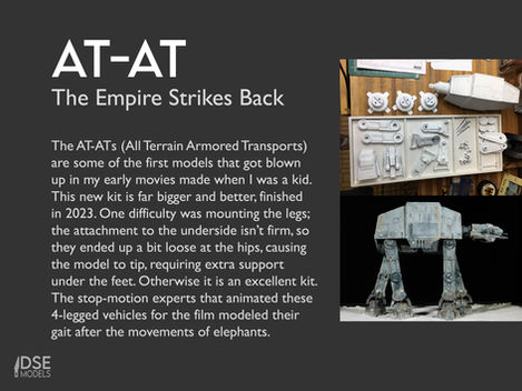 Assembling and painting styrene model kits has been a hobby of mine since my teens. Most of the kits are vehicles or characters from movies and TV shows. I've learned many techniques over the years for both building and painting, and at times I've gone back to some older kits, disassembled and then refurbished them. Books, photos, screen shots from films and TV, and online sources have been my guides for details and weathering. I also had the privilege of seeing the original Star Wars studio models built by Industrial Light and Magic while they were on display in Chicago, IL, USA, where I took reference photos. I custom-mix the majority of my colors, using enamels, lacquers, or acrylics, depending on the desired result. Lots of sanding, patching, and some scratch building goes into it too. I just really enjoy the relaxing peace of model building, the challenging details, and the satisfaction that comes with finishing a kit. I hope you enjoy this collection of my favorite completions.